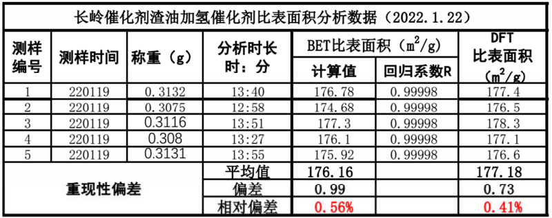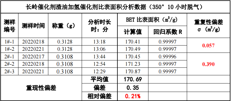 与第一次实验(200℃脱气2小时)的数据对比: