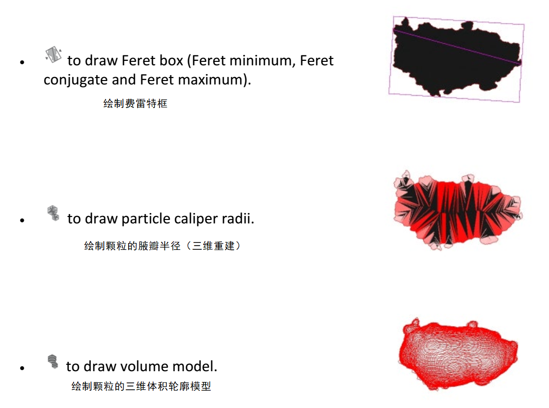 形状信息是对粒径分布的二维的补充,比如大小相识的颗粒可能在形状上大相径庭。对非球形颗粒准确的定性,两维的形状信息是必需的。形状的差异可从粒形分布反映出来。动态图像分析抓取最佳的颗粒图像进行处理。得到的图像可经过复杂的图像分析程序分析,得到图像信息。